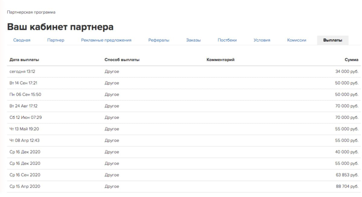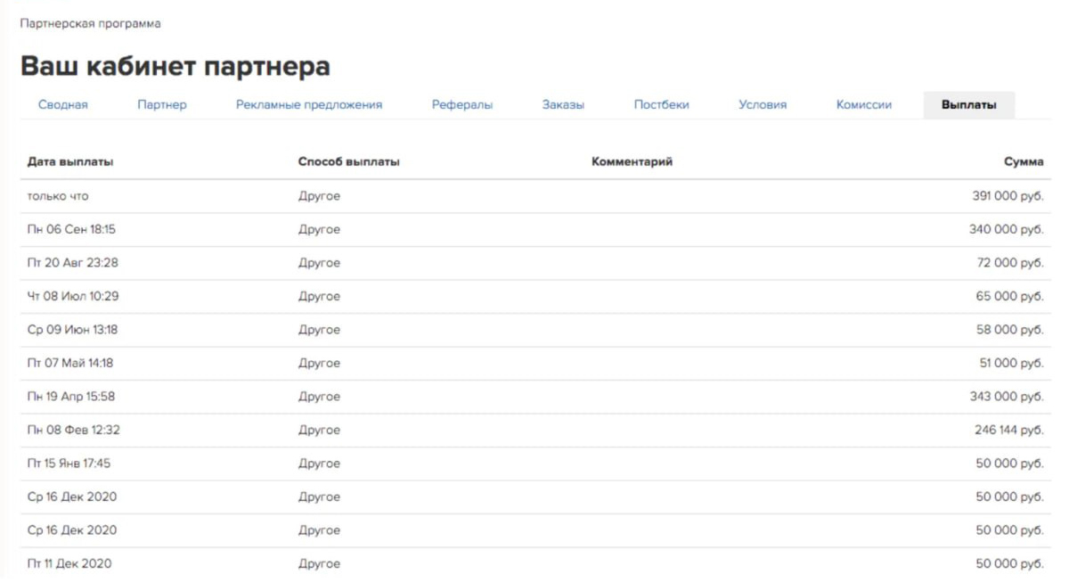 Выплата комиссионных производится только после накопления 30 тыс. руб. Суммами, кратными 30 тыс. руб.